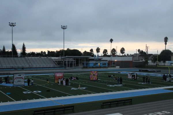 Students laid down their blankets and belongings all across the field and stands. Sadly, the weather was gloomy which